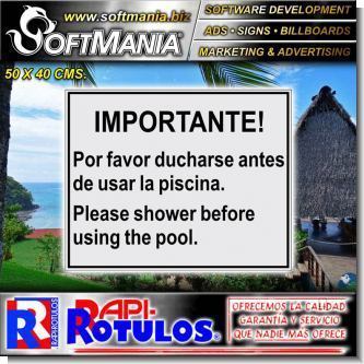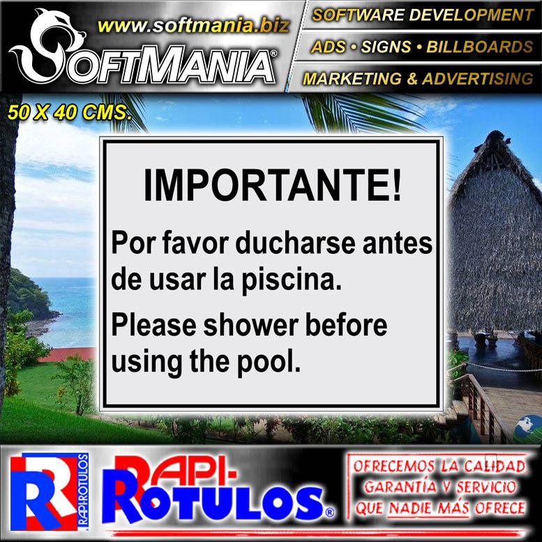 | DESCRIPCION | acrilico transparente con rotulacion reversada con texto importante, por favor, ducharse antes de usar la piscina |