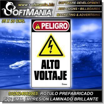 Este producto Material Publicitario Prefabricado PVC 3 Milimetros con Texto Peligro Alto Voltaje para Asociacion Deportiva marca Softmania Ads de Dimensiones 35x20 Centimetros y muchos mas estan disponibles al por mayor y al detalle en SOFTMANIA. Pregunta por el codigo SIGN24062003. Aprovecha grandiosas ofertas todos los dias!