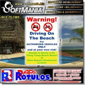 Este producto Rotulo Publicitario Aluminio Acm 4mm con Rotulacion en Vinil de Corte con Texto Solo Vehiculos Autorizados para La Playa para Hotel marca Softmania Rotulos de Dimensiones 50x75 Centimetros y muchos mas estan disponibles al por mayor y al detalle en SOFTMANIA. Pregunta por el codigo SMRR23091629. Aprovecha grandiosas ofertas todos los dias!