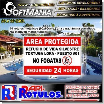 Este producto Material Publicitario Lamina de Hierro con Rotulado de Vinil de Corte con Texto Area Protegida, Refugio de Vida Silvestre No Fogatas para Hotel marca Softmania Ads de Dimensiones 90x60 Centimetros y muchos mas estan disponibles al por mayor y al detalle en SOFTMANIA. Pregunta por el codigo SMRR24012985. Aprovecha grandiosas ofertas todos los dias!