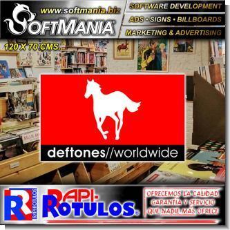 Este producto Rotulo Publicitario Plastico PVC 3 Milimetros con Rotulacion en Vinil de Corte con Texto Deftones Worldwide para Tienda de Discos marca Softmania Rotulos de Dimensiones 1.2x0.7 Metros y muchos mas estan disponibles al por mayor y al detalle en SOFTMANIA. Pregunta por el codigo SMRR23090332. Aprovecha grandiosas ofertas todos los dias!
