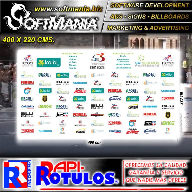 Este rotulo publicitario de la excelente marca Softmania Rotulos fue diseñado especialmente para evento deportivo con la mejor calidad y precio. Con el mensaje correcto para llegar a su mercado meta! Fabricado con materiales de alta durabilidad y resistencia: banner full color, tubo industrial, tornillos